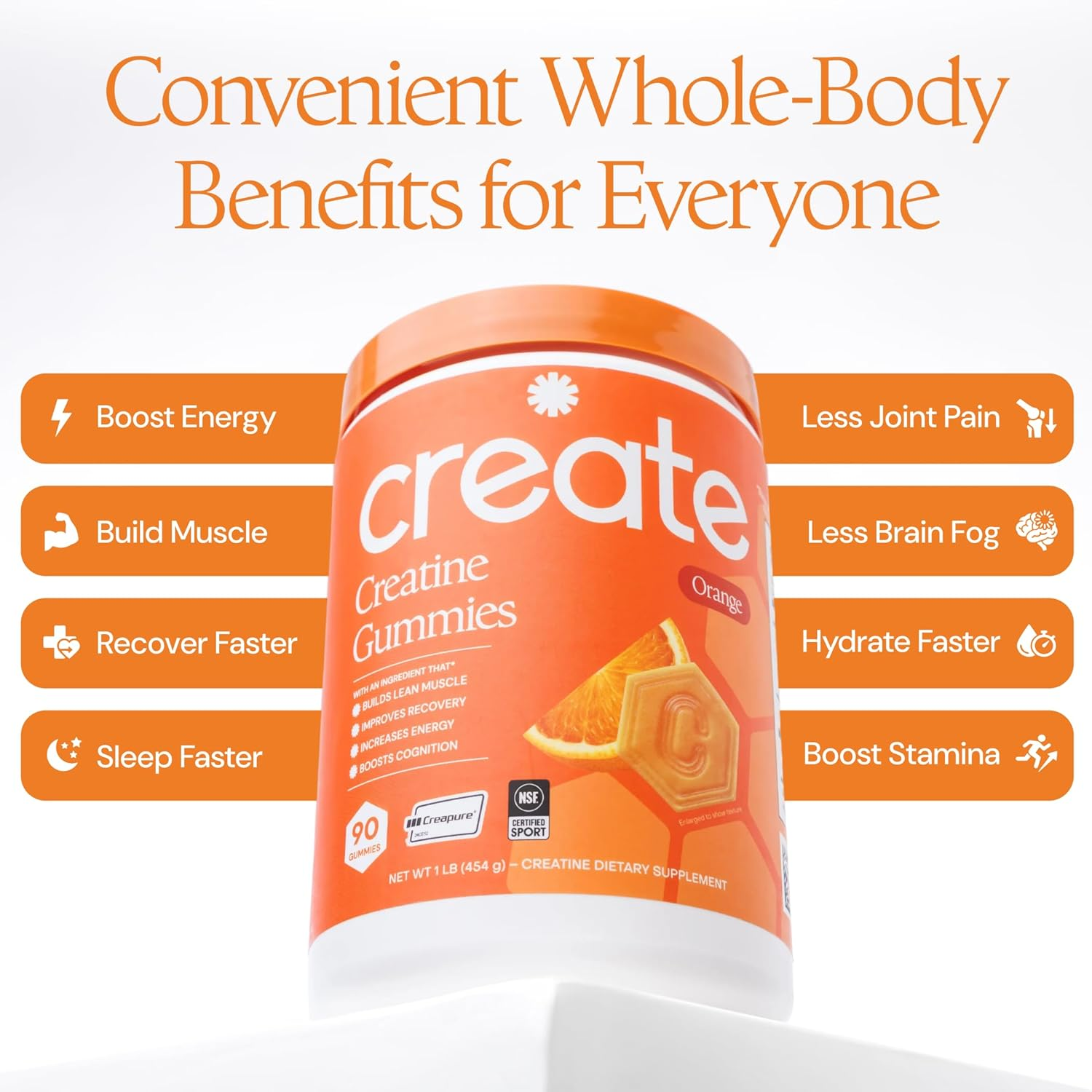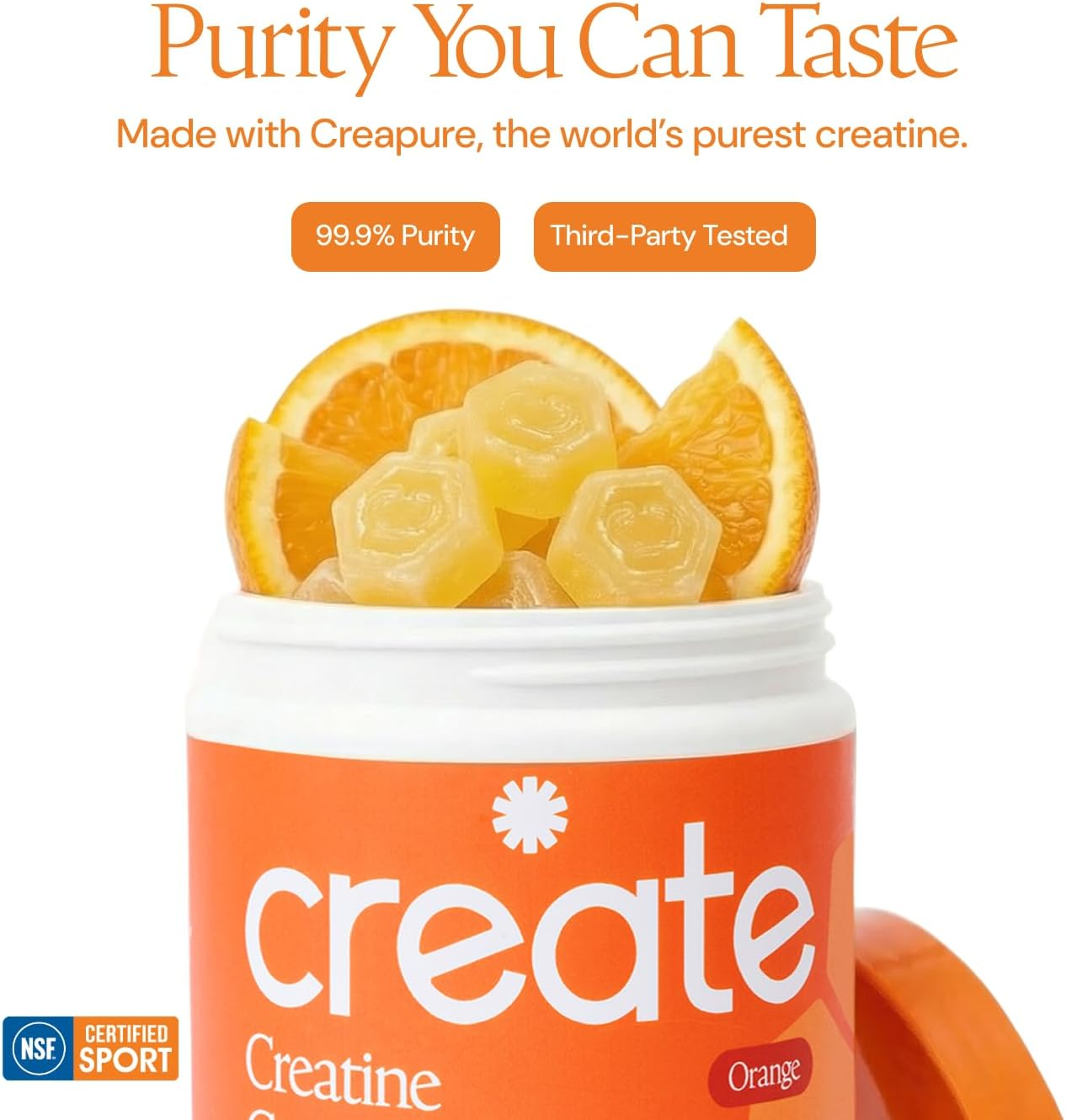 Creatine Monohydrate Gummies for Men & Women, Boost Focus, Strength, and Endurance, Anti-Melting Formula, Vegan, Gluten-Free, Non-Gmo, 1.5G of Creatine per Gummy (Orange)