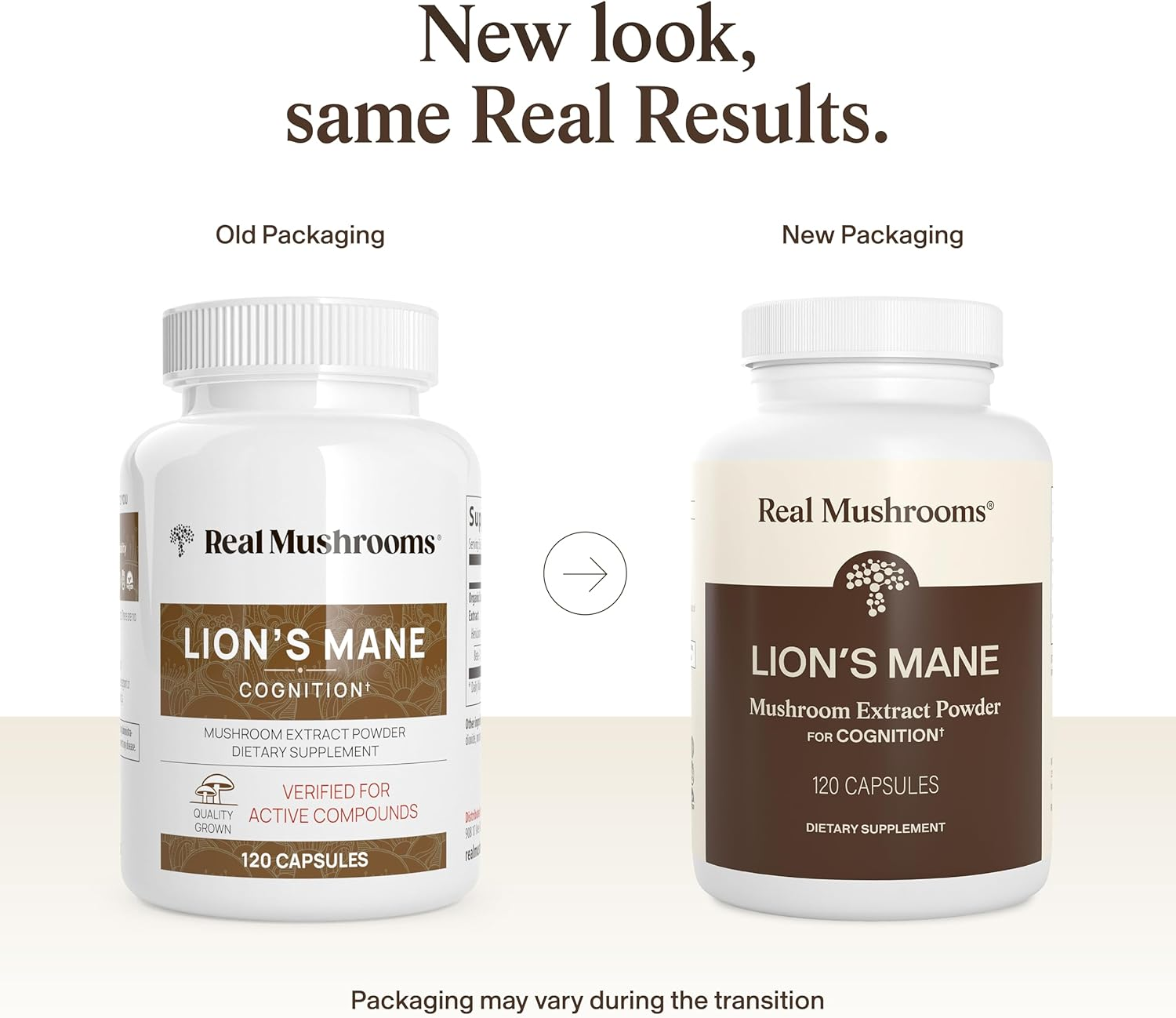 Lions Mane Mushroom Cognition (120 Capsules) Lions Mane Mushroom Powder Extract Capsules | Brain Supplement, Brain Vitamins, Focus Supplement