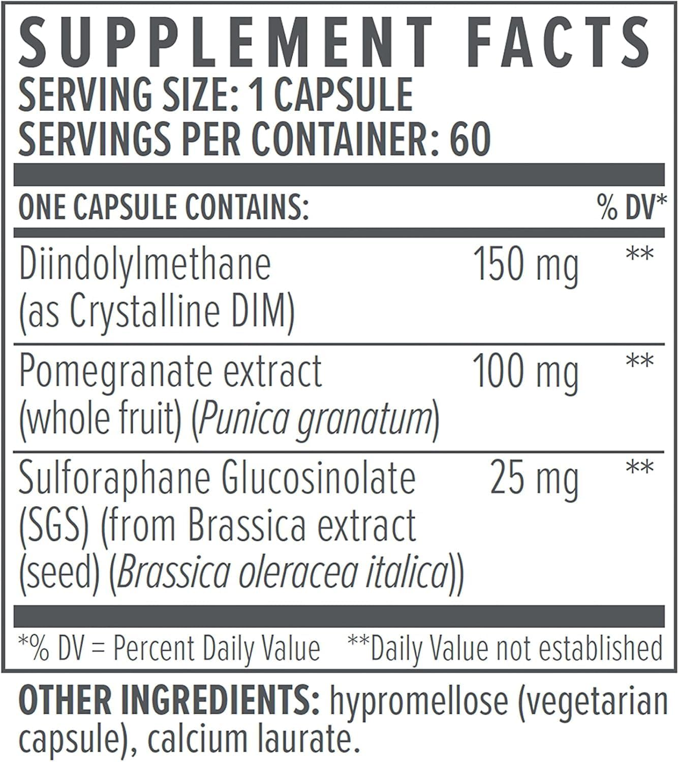DIM SGS+ is an ideal combination of diindolylmethane (DIM), sulforaphane (SGS), and pomegranate extract. This combination of ingredients helps stimulate a more efficient metabolism for estrogen, meaning it can help regulate the ratio of healthy to less healthy estrogen. DIM SGS+ is specially formulated to help support hormone optimization and bioidentical hormone replacement therapy (BHRT). The main ingredient, DIM, is a compound found in cruciferous vegetables such as broccoli, cabbage, and kale and helps maintain hormone balance. BioTE DIM SGS+ may also help promote breast, uterine, cervical, and prostate health.