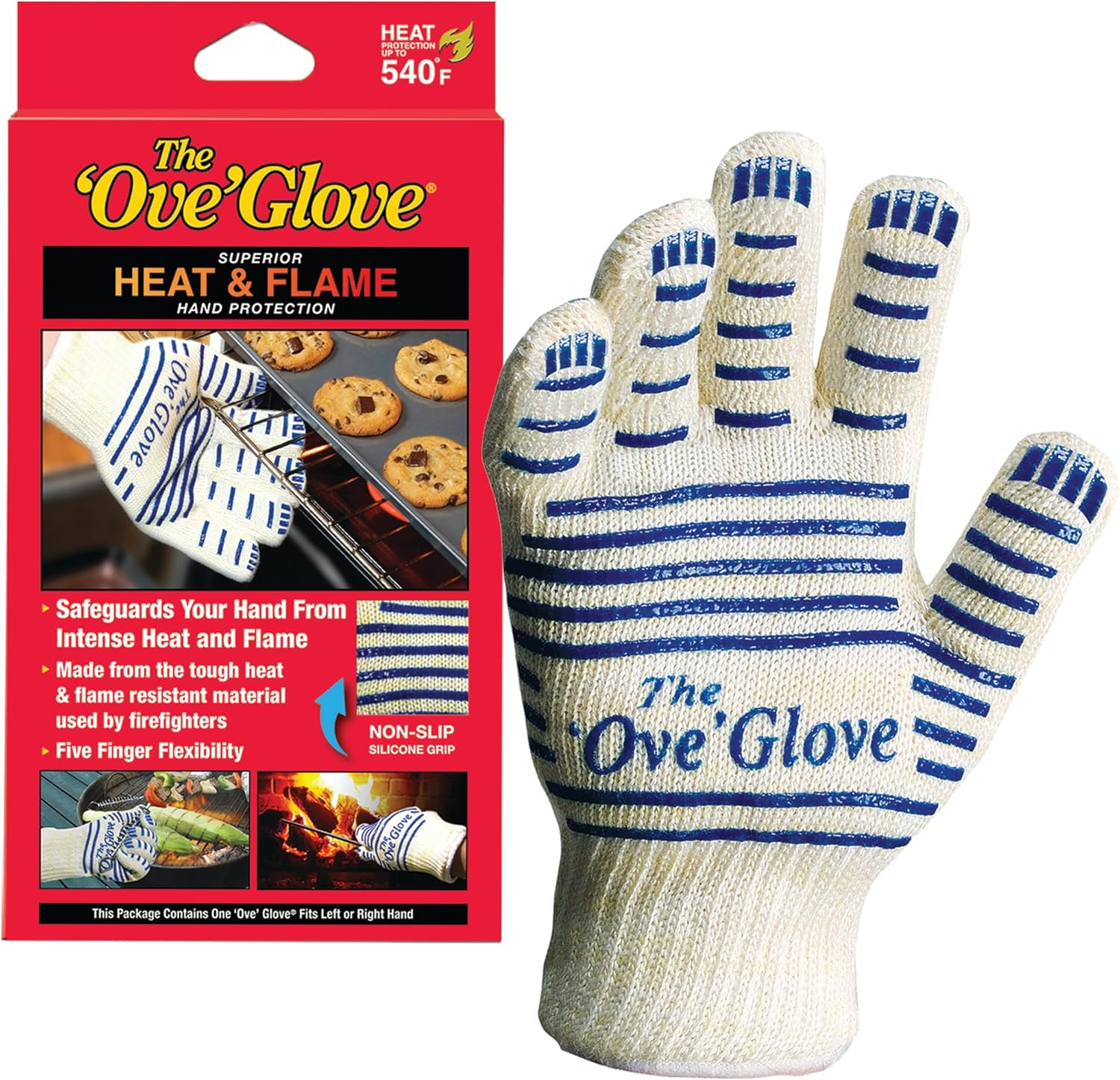 Handy Man’s – The Ove Glove Hot Surface Handler crafted from Kevlar & Nomex by DuPont offers firefighter-grade protection withstanding temperatures up to 540 degrees. Ideal for barbecues kitchens fireplace log rearranging car repairs welding and lightbulb changes it’s a versatile tool for unisex adults. The exterior layer is firefighter-grade heat and flame-resistant material while the interior features soft double-knit cotton for comfort. Machine washable for easy maintenance its tough exterior forms a thermal isolation barrier ensuring safety when handling hot objects. The Ove Glove is perfect for the kitchen barbeque and handling hot surfaces around the house. The Ove Glove exterior layer is made of heat and flame material used by firefighters. The interior layer of soft double-knit cotton. Machine washable. The tough exterior of this glove forms a thermal isolation barrier slowing the temperature increase in the interior layer of soft doubleknit cotton. When exposed to an open flame the outer layer of the glove does not catch fire and does not melt. The tough exterior layer of the glove is designed as a thermal insulator to slow the temperature increase in the soft double-knit cotton interior of the glove. Machine washable. 1 Glove – Set of 2 – White